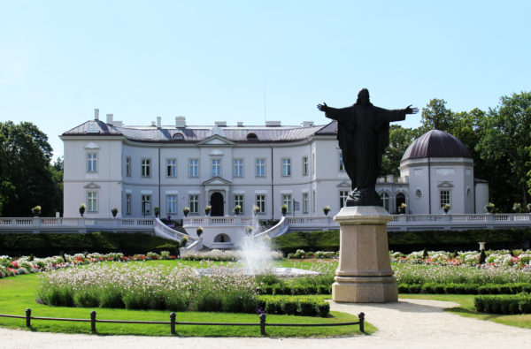 Przed pałacem Tyszkiewiczów znajdują się również posągi kobiet symbolizujące poszczególne pory roku.